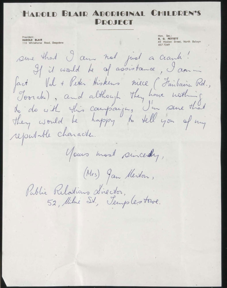 Letter to the Prime Minister from the Public Relations Director, Harold Blair Aboriginal Children's Project, urging him to publicly support the vote YES campaign, 10 May 1967.