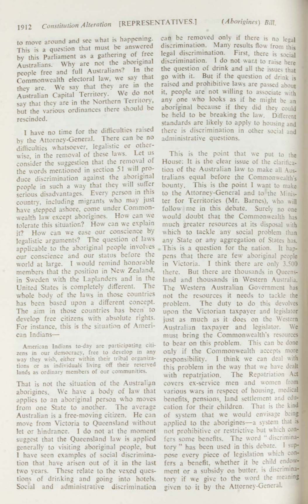 Parliamentary debate, Constitution Alteration (Aborigines) Bill 1964